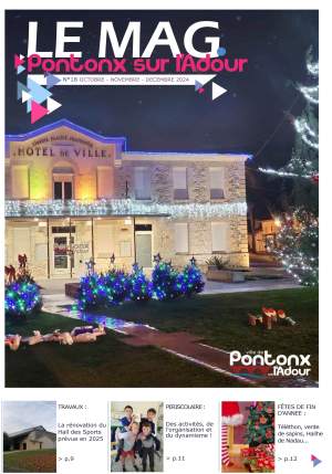 Le magazine de Pontonx-sur-l’Adour vous informe des projets municipaux, des événements et de l’actualité locale. Chaque numéro reflète la vie de la commune et renforce le lien entre habitants et élus. Consultez les dernières éditions du Mag pour rester connecté à votre ville.